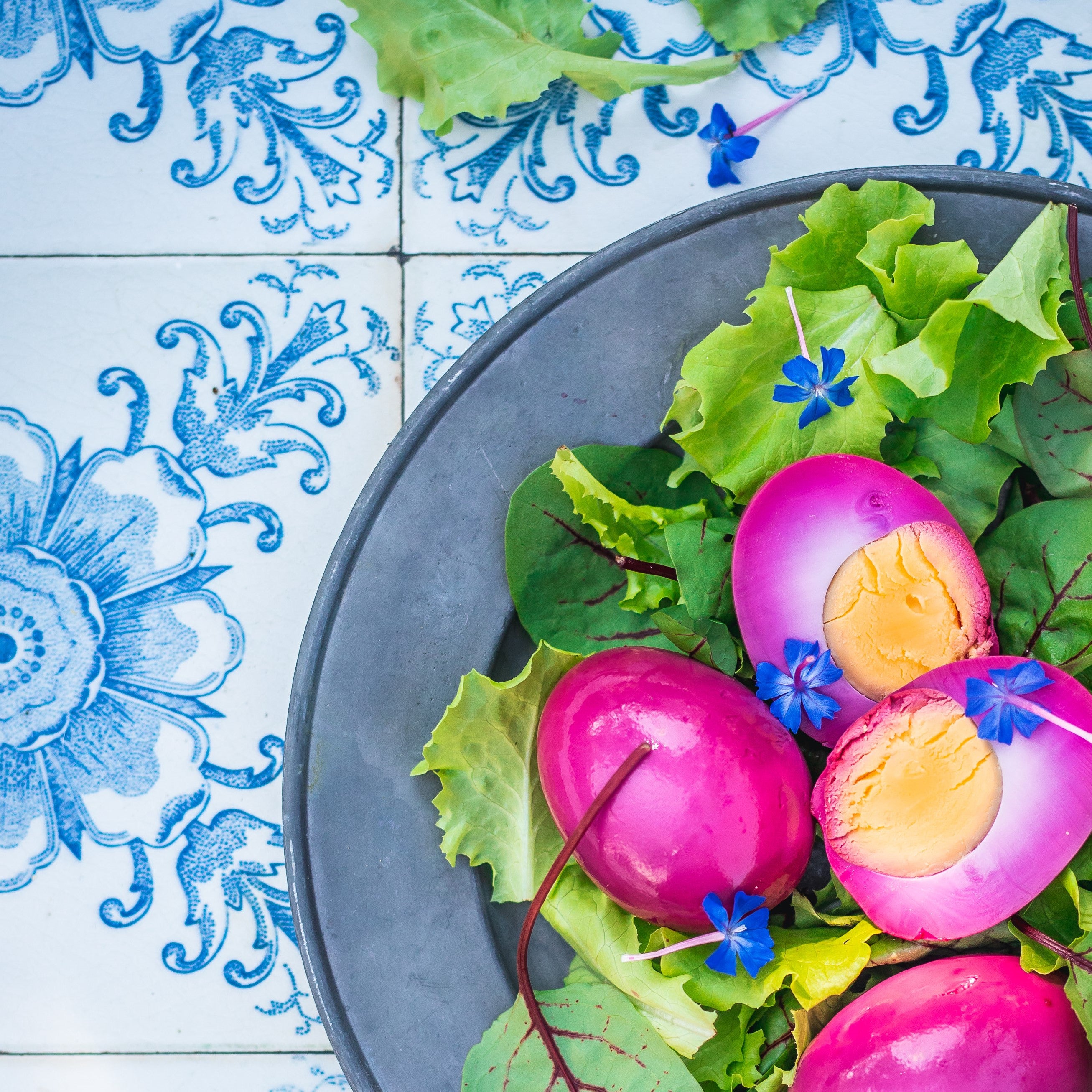 Boil the eggs. Peel them and place them in the bowl containing the beetroot puree. Cover them completely with the puree. Seal with cling film, place in the refrigerator and leave to rest for about 6 to 8 hours.
