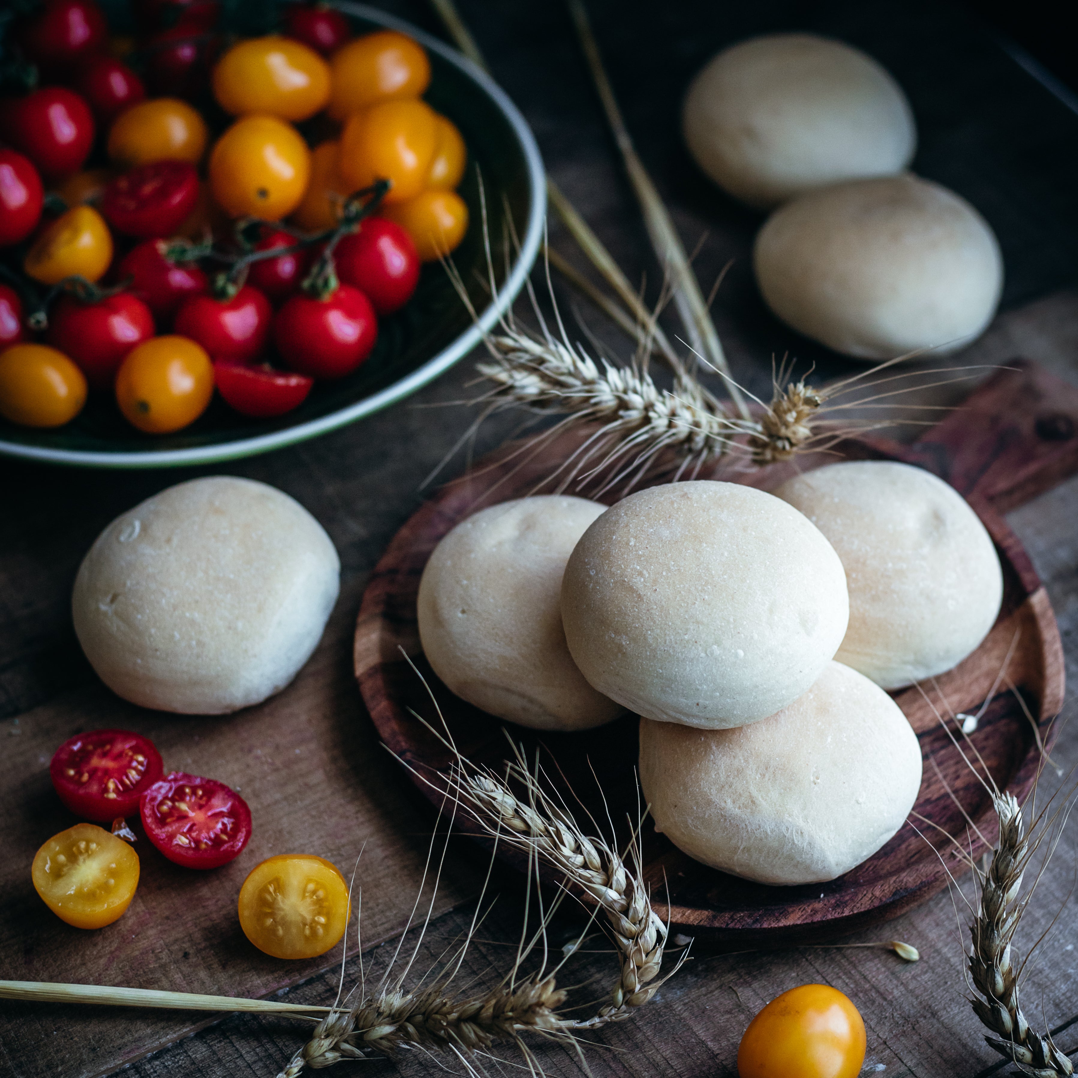 Das Rindertartar mit Salz, Pfeffer und einem Schuss nativem Olivenöl extra anmachen. 4 kleine Frikadellen mit dem Durchmesser des Brötchens formen.