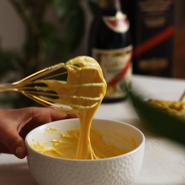 Vorsichtig die Dotter aus den Eiweißen entfernen und in eine Schüssel mit Mayonnaise, Senf und Balsamico-Essig aus Modena geben.