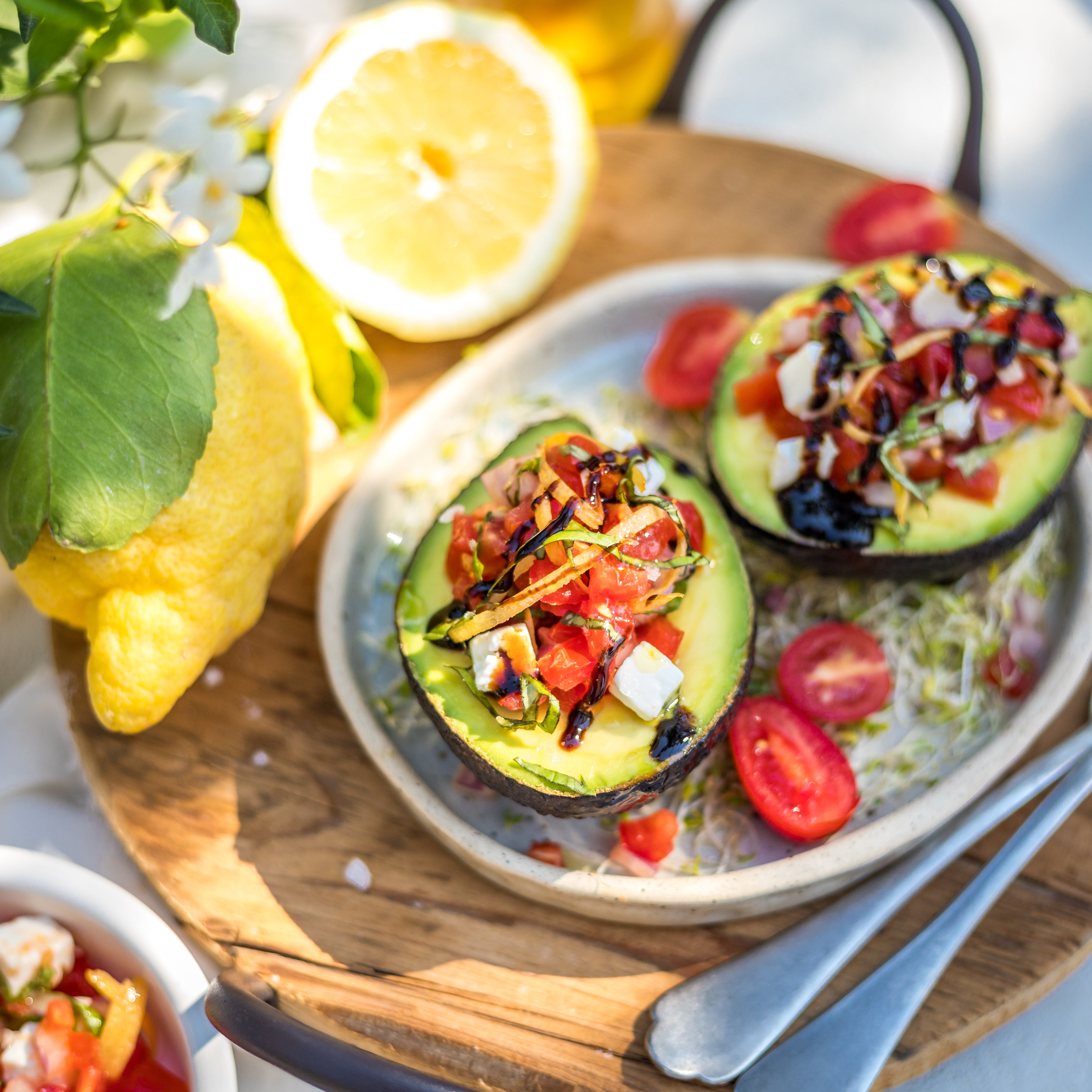 Verser la farce dans les cavités. Assaisonner avec le zeste de citron, le sel en flocons à discrétion et servir.