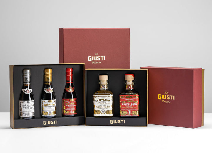 Nata dalla stessa idea dello Scrigno, questa collezione propone agli amanti del Balsamico un percorso degustativo della Collezione Storica Giusti: cinque Aceti Balsamici di Modena con ricette diverse e tempi di invecchiamento crescenti.
